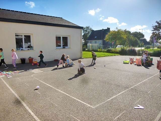 5 septembre: déplacement dans le bourg, et première immersion au bois du Couëdic pour les cycle 2