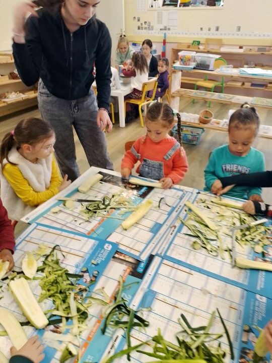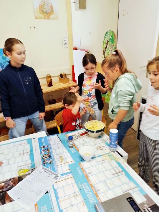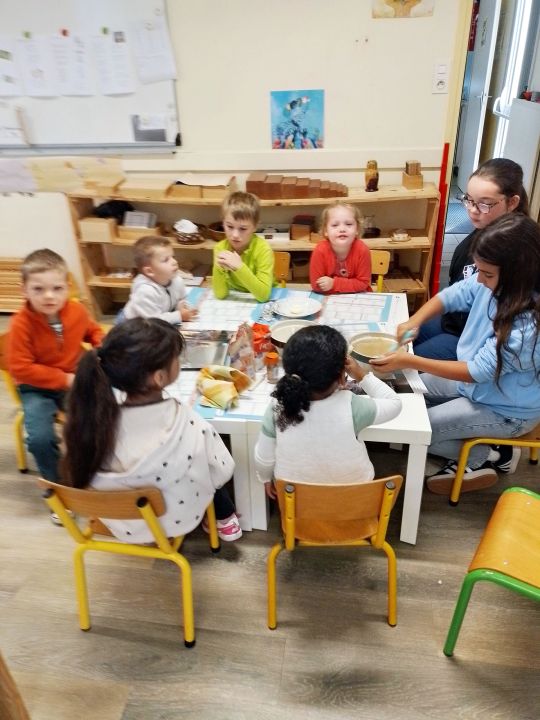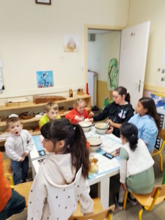 Place aux ateliers! Les grands aident les petits, on coopère et on cuisine!